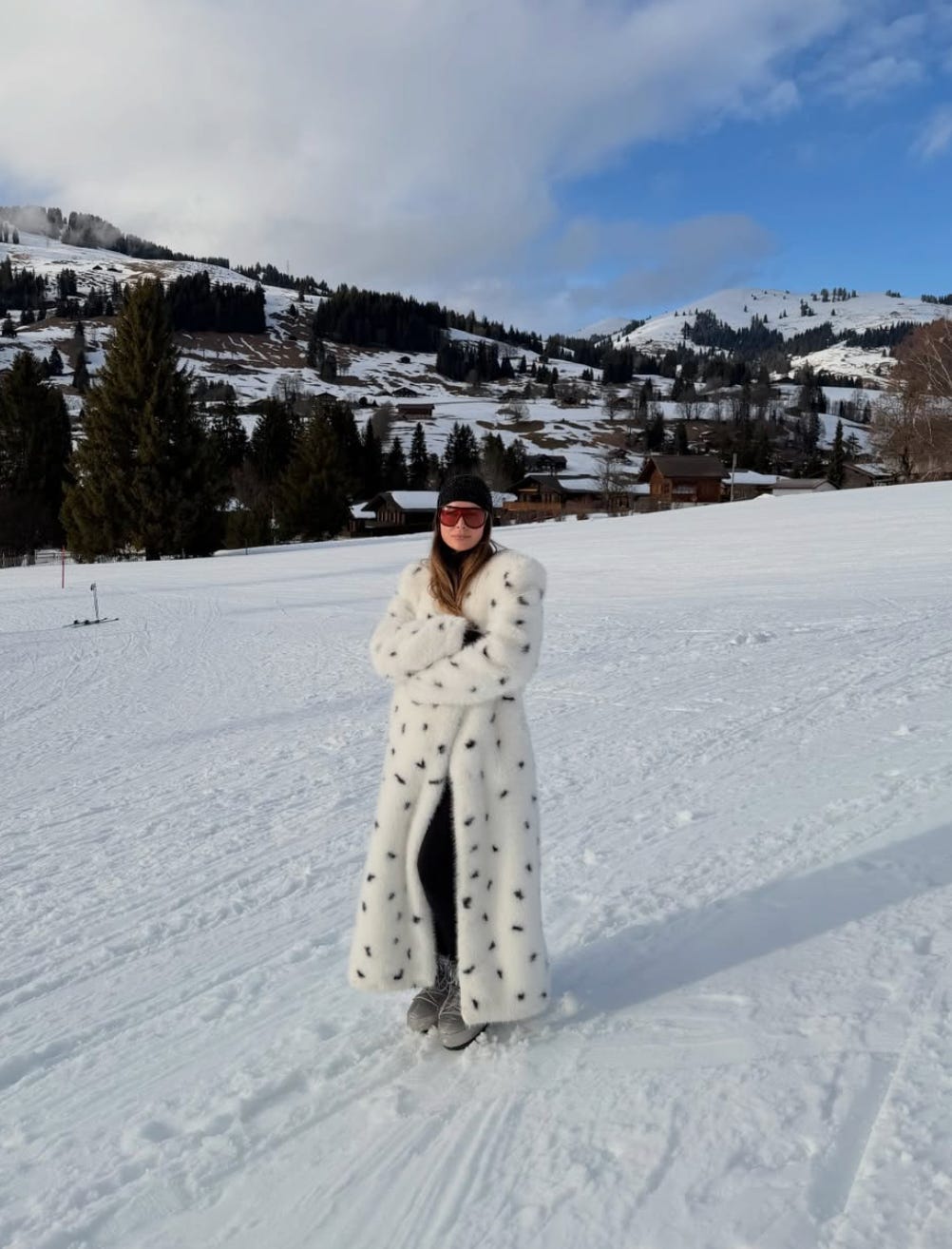 You can get away with being extra when skiing so it’s the perfect place for an OTT coat. Emma Lou just wore an amazing one. If you’re concerned about luggage then pop your coat in a suit carrier bag, hang it off your carry-on and take it onto the plane (a tip from Saasha Burns).